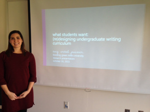 My approach to research is reflective of an insatiable desire to learn, and then an imperative to share that learning; I view my scholarly work as an opportunity not only to continue to develop intellectually and professionally, but also to make valuable contributions to Rhetoric and Composition studies. And while I certainly have a diverse set of research interests, I am able to integrate them through my consistent use of collaborative, feminist methodologies and a general pedagogical objective.
